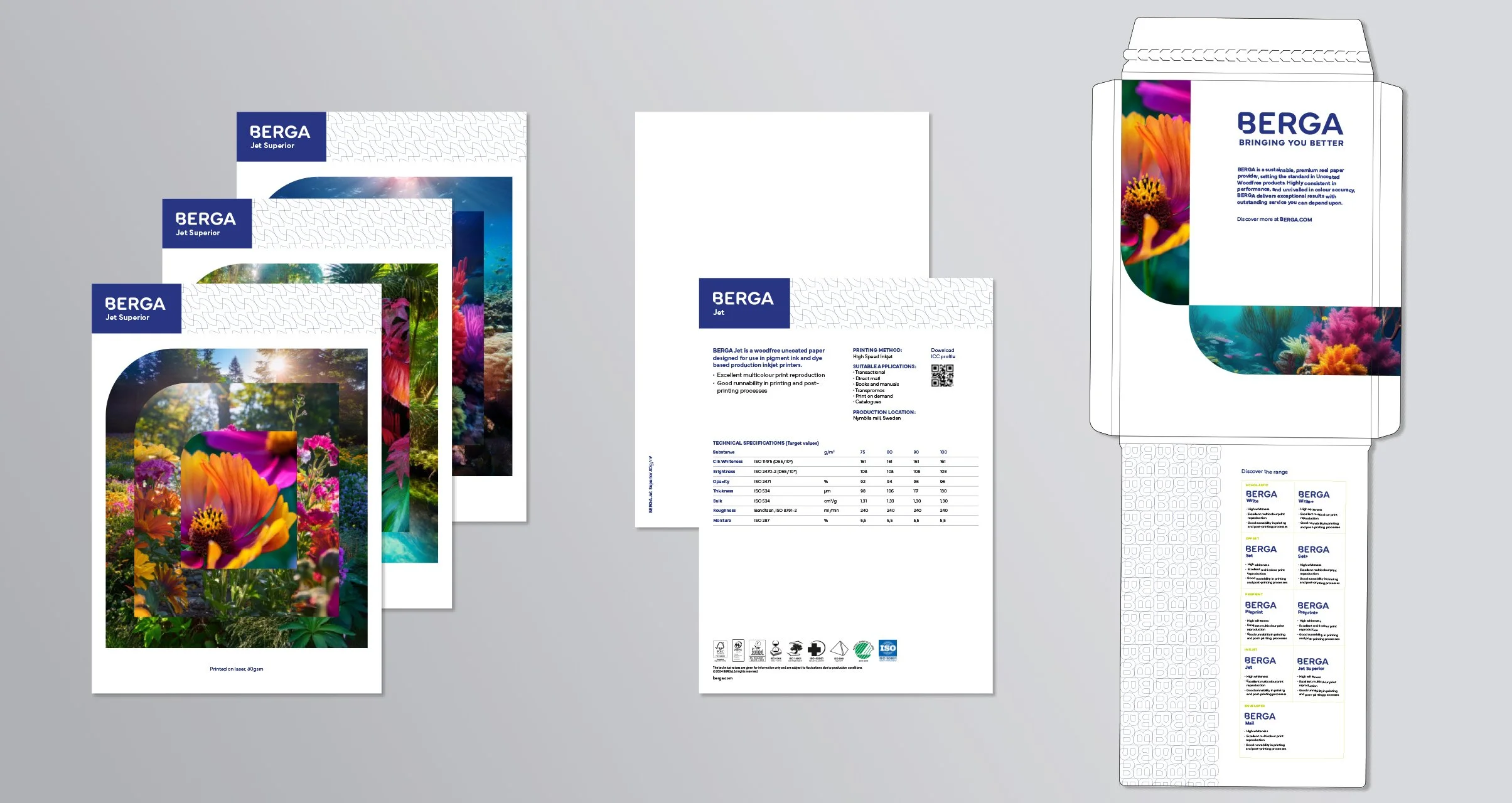 I was commissioned to create a brand identity that would position Berga as the standard in premium uncoated woodfree paper reels. I built the brand around the promise ‘Bringing Your Better’, in which Berga delivers superior quality on every level. The solution is a bold, confident visual that stands out against the conservative and corporate-looking competitor brands.