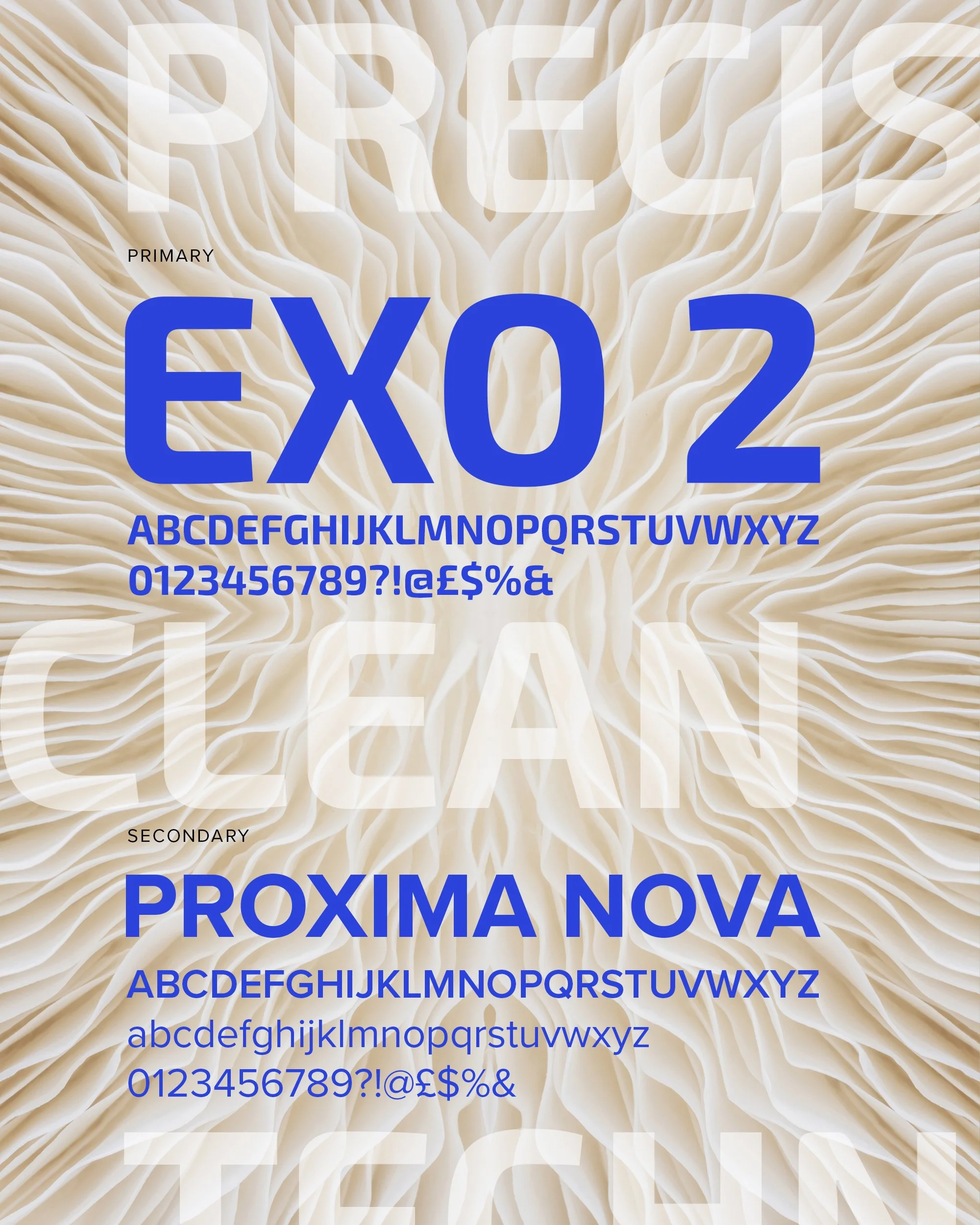 New typefaces were added to suit the brand positioning. As the primary typeface, the roundness of EXO 2 balances tech and innovation with nature and accessibility. Paired with Proxima Nova as a versatile secondary typeface for body copy.