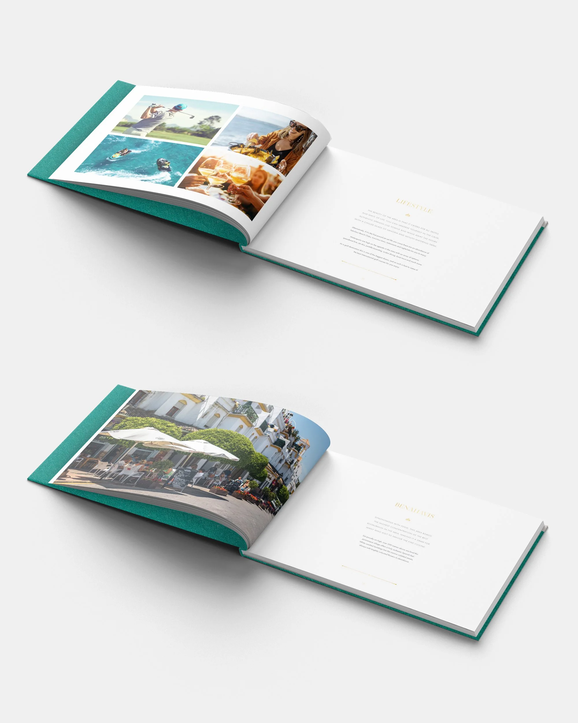 Aspirational and luxurious visual language is paired with an emotive, inspiring and benefit-driven narrative. Colours of the mediterranean, sun-drenched imagery and shadow backgrounds constantly remind the customer of why they want to live in Marbella... the stunning year-round sunshine.