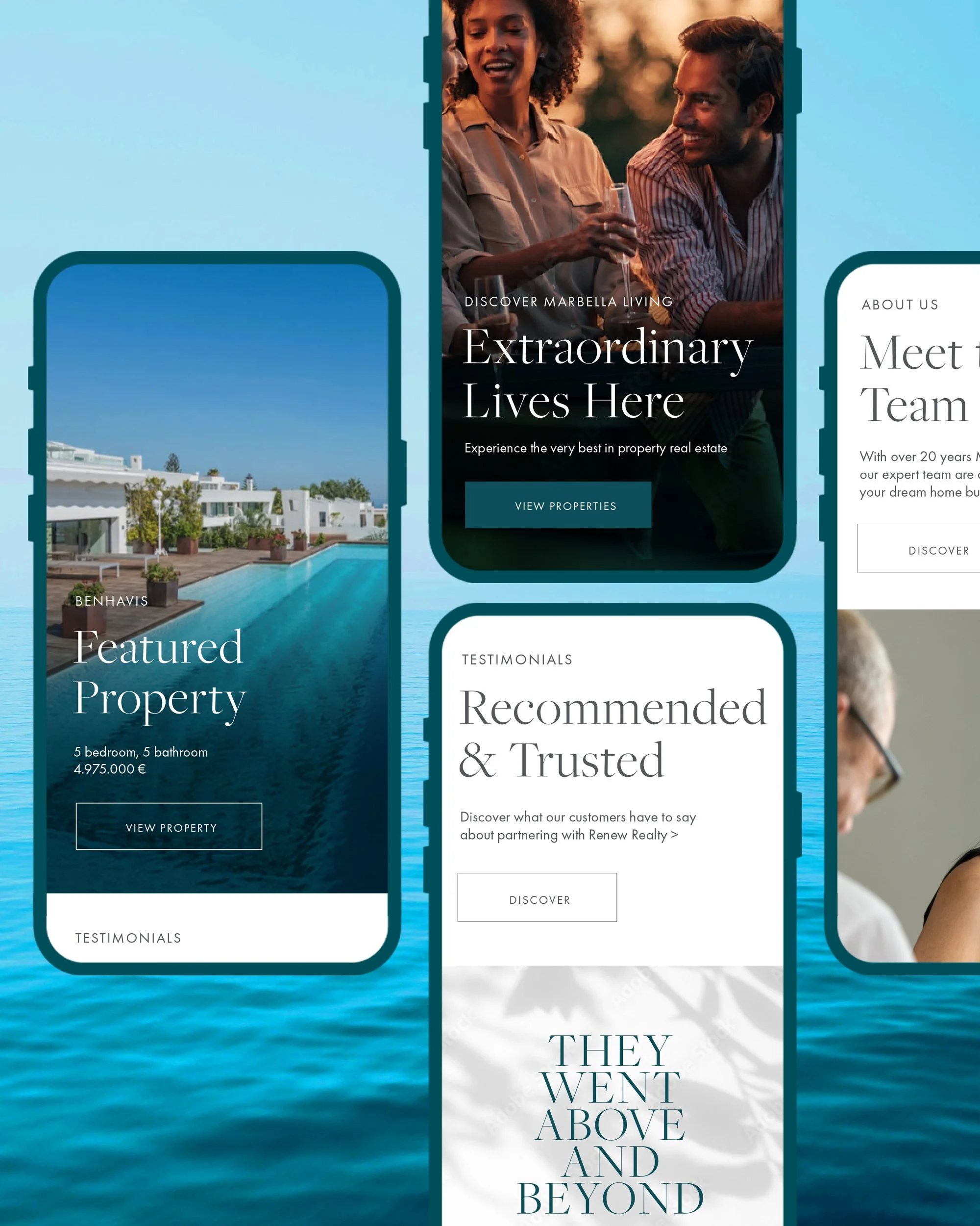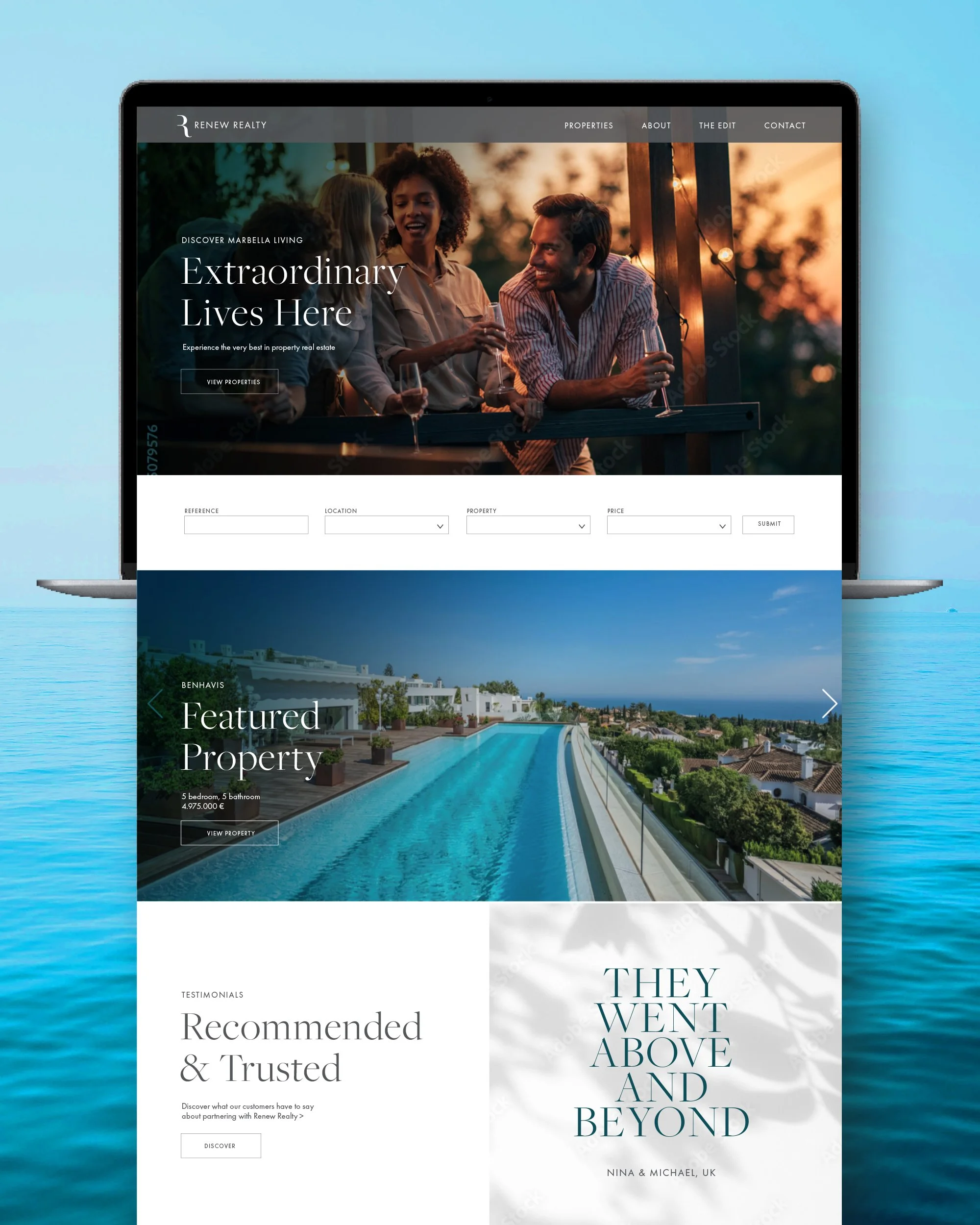 Renew Realty are a luxury realtor based in Marbella. A family-run company, they offer a bespoke, personalised service putting customers’ needs above all else. In the highly competitive Marbella property market, Renew Realty required an overhaul of their brand, positioning and communications if they were to cut through.