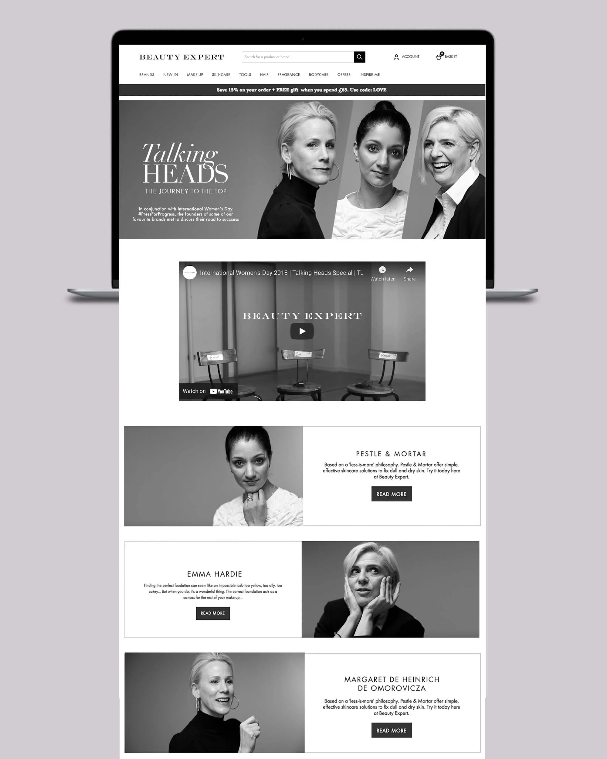 To celebrate International Women’s Day premium beauty destination Beauty Expert partnered with female founders of some of the world’s most successful independent beauty brands to get discuss what drives them, what inspires them and what challenges they have had to overcome to succeed. Filming in black and white reinforced the candid authenticity of the founders and the honesty they brought to the interview and campaign.