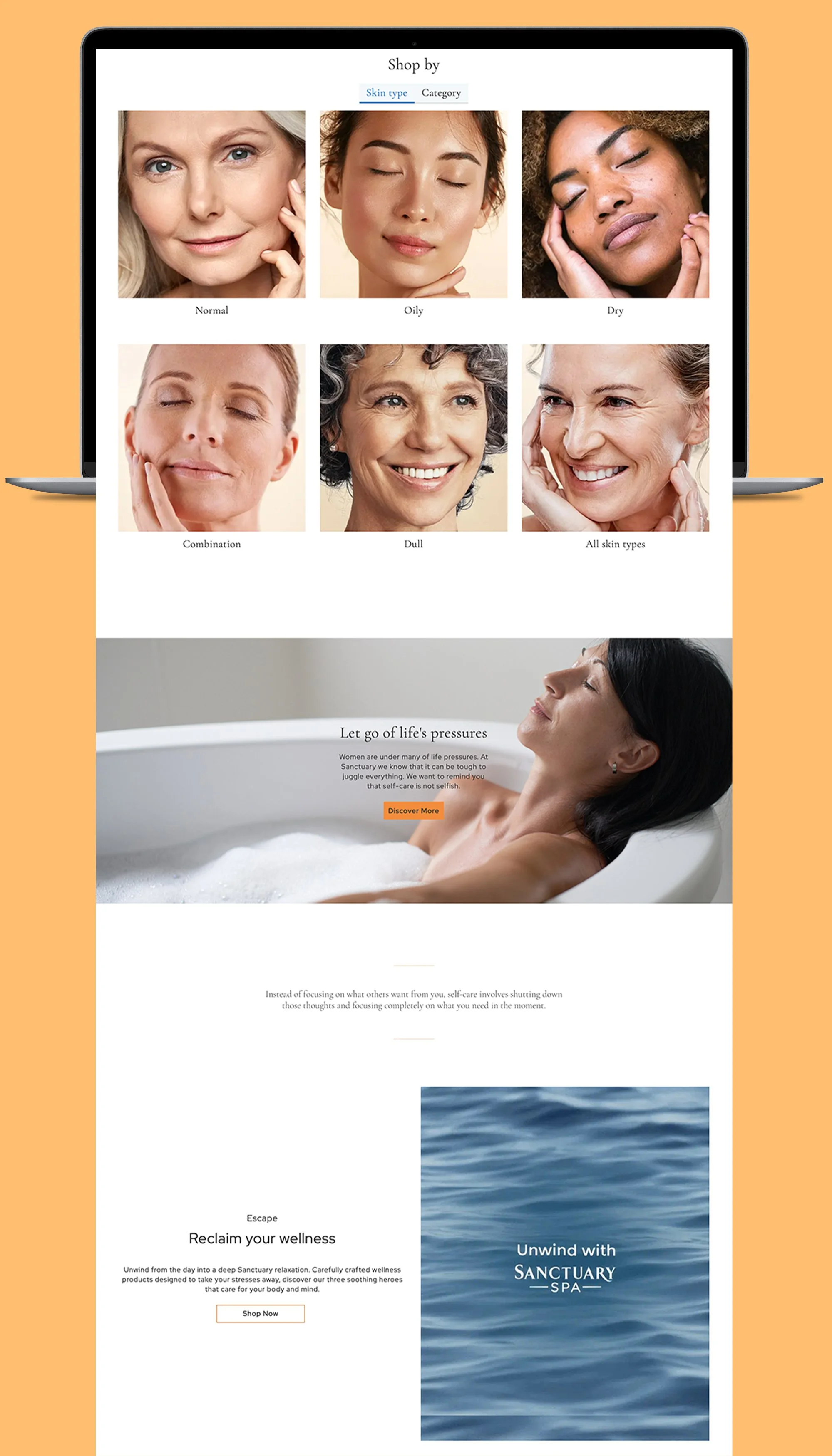 The brief was to reimagine the Sanctuary Spa DTC as a digital spa experience that immersed consumers in a world of wellness, in which they could easily discover the brand and products. I creatively lead the project which also included art direction of new product and swatch photography, and the curation of brand world imagery and video to collectively create a sensory, calming yet informative and engaging digital environment.